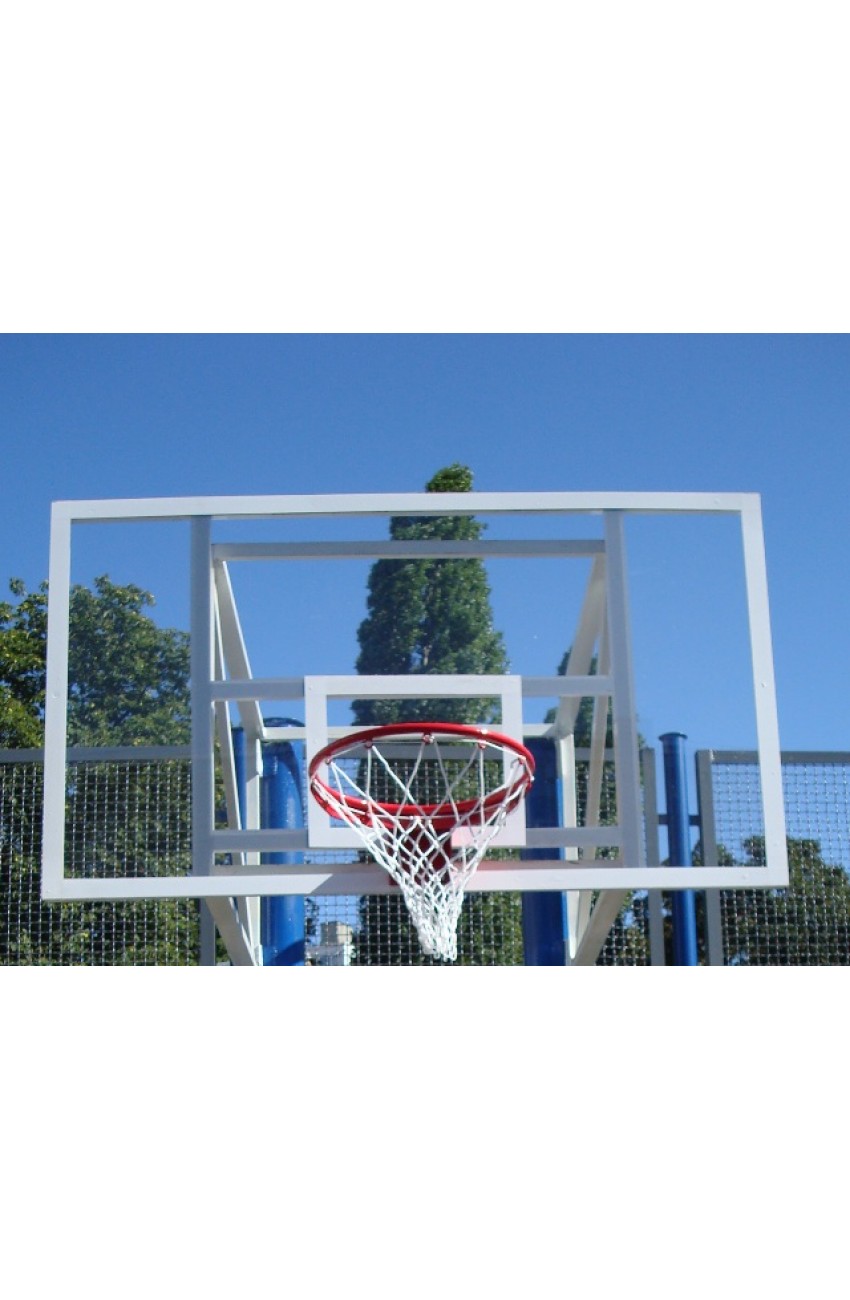 Баскетбольний щит виконаний з оргскла товщиною 8 мм за вимогами ФІБА, з силовою антивібраційною металевою рамою для вулиці і спортивного залу.