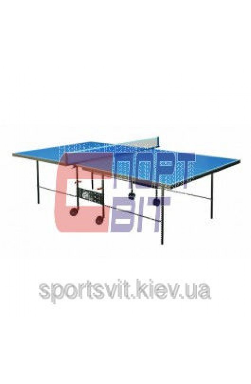 Тенісний стіл для закритих приміщень і вуличних спортивних майданчиків. Як матеріал стола використовується прогумований меломін синього кольору товщиною 4 мм. Цей матеріал стійкий до впливу спеки та холоду, а також вологи.
